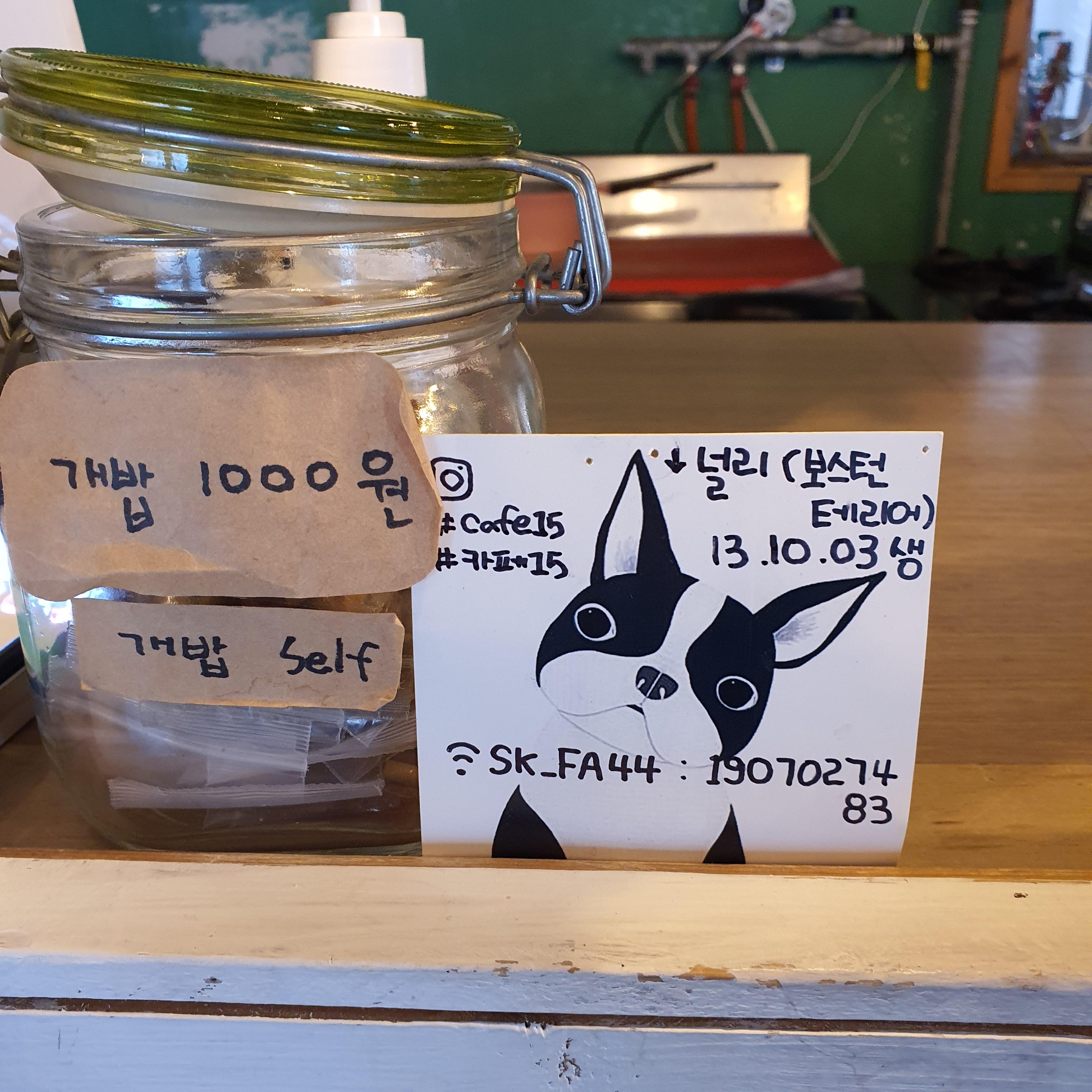 카페를 들어오면 CAFE15 마스코트 널리가 반겨준다.